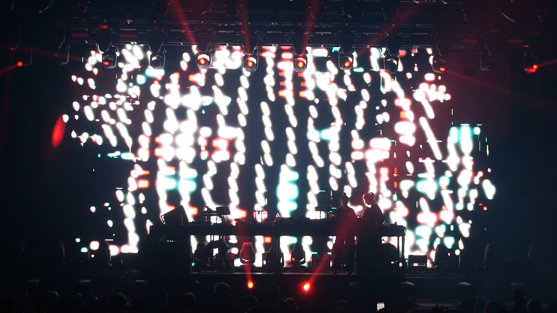 Some of the below examples are created through real-time generative visual systems in TouchDesigner being composited with pre-rendered content. Much of the pre-rendered content used in this show was built by Sila Sveta. The stills below focus on the use of this content in conjunction with additional systems and processing chains.