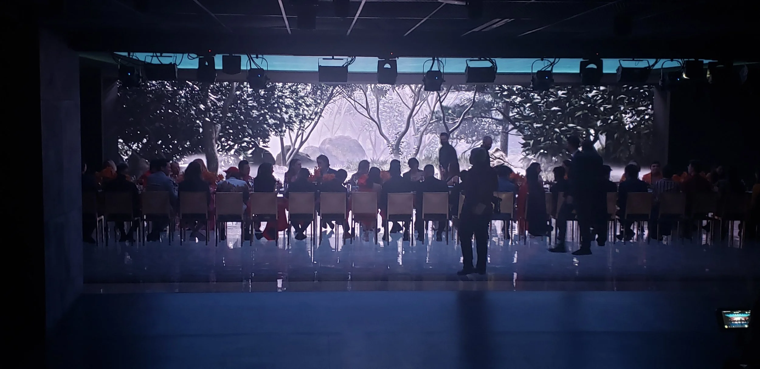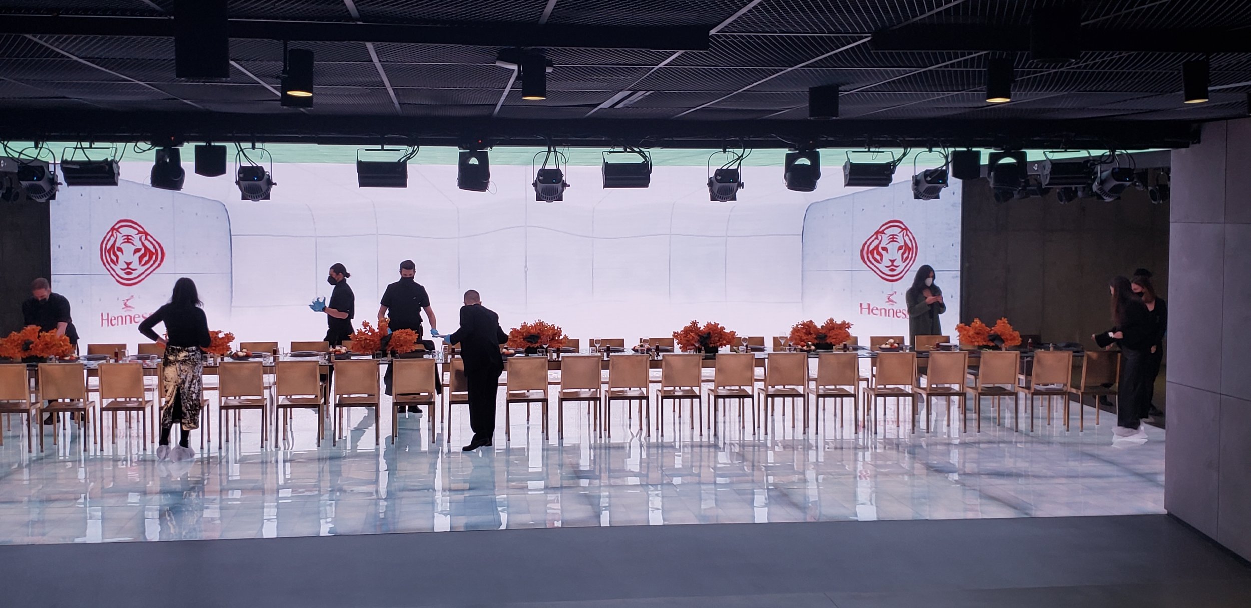 Held at Genesis House in Manhattan, NYC. Live operation of an in-house media server, the Analogway Picturall, to sequence and playback visual content created by Sila Sveta for the immersive 3 LED Wall showroom floor where the attendees dined. A collection of downtempo music was written and provided by IT-XPO, which was lightly mixed and played back using Ableton Live.